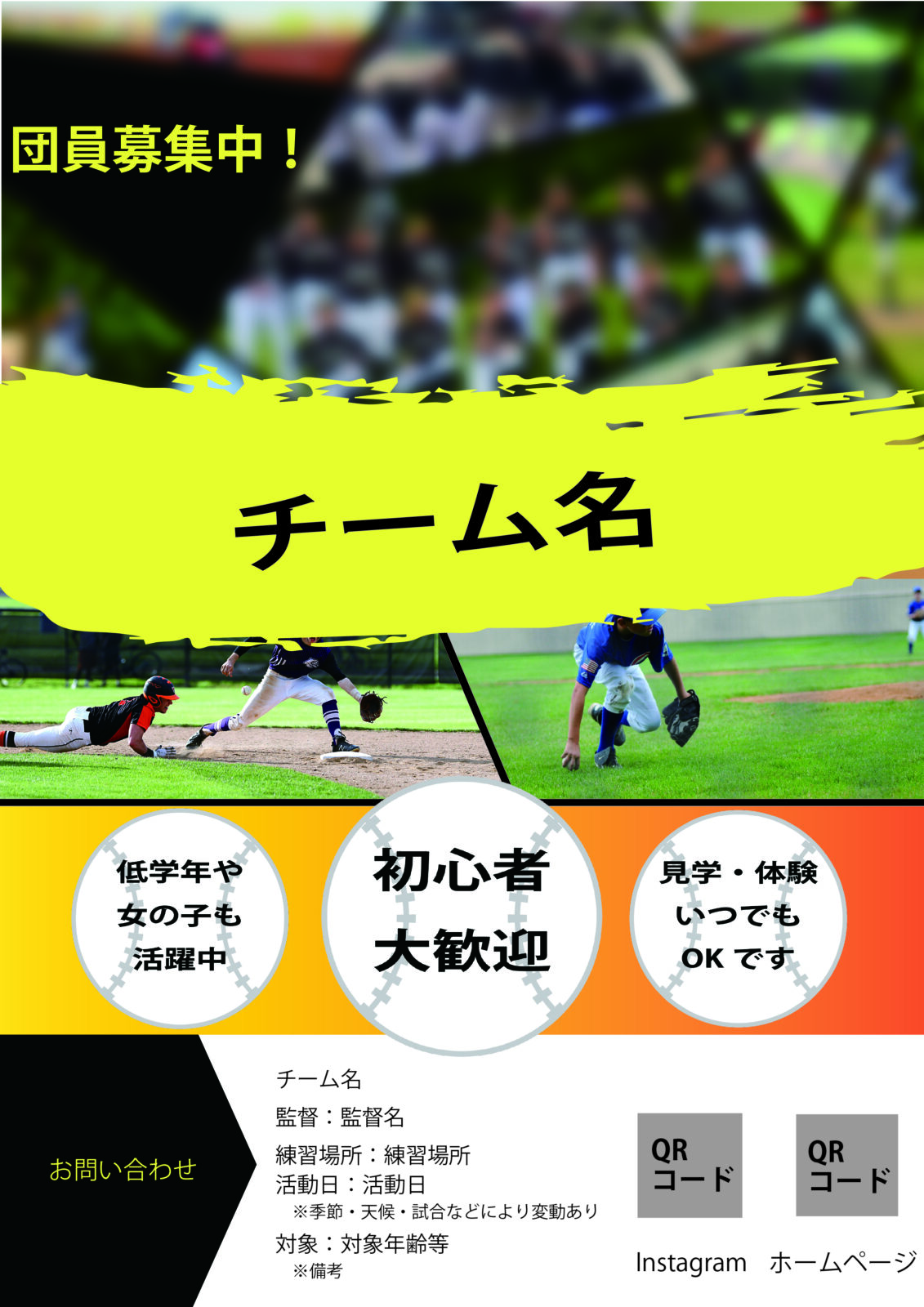 また、活動日時や問い合わせ先など必要な情報は、ひと目で分かる位置に整理しています。